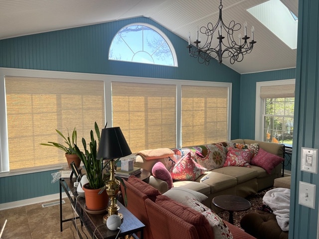 Make your living room feel cozy and finished. Layering custom drapes over your blinds adds a powerful thermal barrier that stops cold air from seeping in around the edges of the window. Choose from heavy, insulating fabrics to create a warm retreat from the harsh winter weather outside.